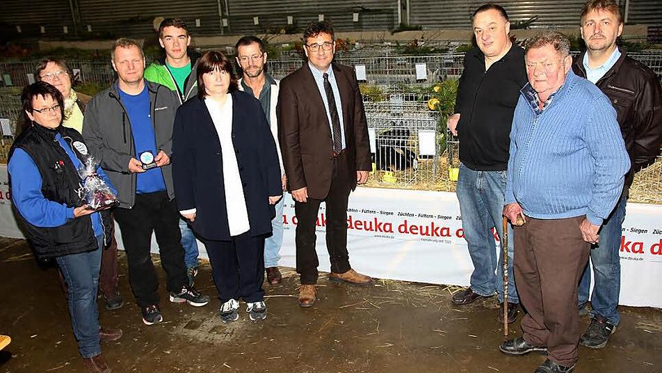 Truckenbrodt (Adventskalender). Die Bezirksverbandjugend-Plakette erhielt Janis Stenglein (Fränkische Landgänse). Der Landesverbands-Ehrenpreis ging an Adolf Kräußlich (Deutsche Zwerg-Reichshühner). Den Ehrenpreis des Kreisverbandes erhielt Gerhard Wenzel (Zwerg-Paduaer silber-schwarzgesäumt). Im Kaninchenbereich erhielt den Jugendlandesverbands-Ehrenpreis Janis Stenglein (Wiener Weiß), der Landesverbands-Ehrenpreis ging an Thomas Schremmer (Marburger Fee), Martin Sascha (Holländer Havanna weiß), Anita Truckenbrodt (Adventskalender). Der Ehrenpreis des Kreisverbandes erhielten Karl-Heinz Stenglein und Marina Schneider. Den Ehrenpreis des Kreisverbandes im Jugendbereich bekamen Janis Stenglein und Ingrid Sandmann.