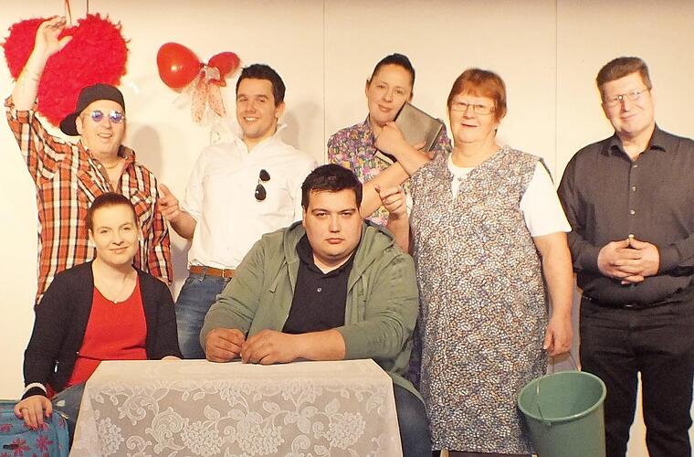 Kann denn Liebe Sünde sein? Die Beantwortung dieser Frage wird je nach Temperament und/oder Lebenserfahrung von den Röbersdorfer Theaterspielern mit Leben erfüllt. Es spielen (von links) Frank Großkopf, Ramona Büttner, Christian Weiß, Andreas Dittrich, Christina Weber, Hildegund Zillig und Horst Großkopf. Spieltermine im Dorfgemeinschaftshaus Röbersdorf sind am 9./10., 16./17. und 22./23. März jeweils um 19.30 Uhr und am 11./18. sowie 24. März um jeweils 18 Uhr. Karten gibt es am morgigen Sonntag von 14 bis 16 Uhr im Dorfgemeinschaftshaus in Röbersdorf, Gassberg 1, und ab Dienstag, 20. Februar, bei Frisierstube Bärbel Dittrich, Tel. 09543/5628, Abtsweg 22, Röbersdorf. Foto: privat