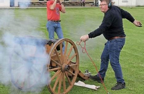 Die imposante Salutkanone mit einem Kaliber von 42 mm ist Baujahr 1903 und wurde vom damaligen Veteranen- und Militärverein angeschafft. 2003 wurde sie aufwendig restauriert. Die Lafette ist aus Buchenholz, die Räder sind aus Eschenholz gefertigt. 100 Gramm Böllerpulver kommen in eine Kartusche, die, mit einem Korken verdämmt, entzündet wird.