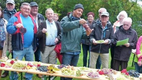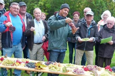 Herbstzeit ist Erntezeit. Unter dieser Devise und mit dem Leitspruch "Coburger Weinlese 2019" präsentierte Kreisfachberater Thomas Neder einen Teil des Obstes aus dem von ihm bestens betreuten Obstlehrgarten. Er hatte die Träubel von 17 Weintraubensorten sorgfältig auf einem Tisch aufgereiht. Es war eine Augenweide. Ob es unter anderem "Muscat Blue", die gelbe "Birstaler Muscat", "Lilla" oder die neue Züchtung "Katharina" waren, die doch recht zahlreichen Zuhörer und Zuschauer waren begeistert von den Trauben, die sie nicht nur kosten durften, sondern auch bewerten konnten, nachdem Neder ihre Eigenschaften erläutert hatte. Äpfel, Birnen, deutsche Kiwis wurden ebenfalls vorgestellt und Kostproben verteilt. Trotz des Regens der vergangenen Tage ist die trockene Witterung dieses Jahres nicht vergessen. Darunter hätten insbesondere die Zwetschgen leiden müssen, sagte der Kreisfachberater. Birnen, Trauben und Quitten seien "die Gewinner" gewesen. dav