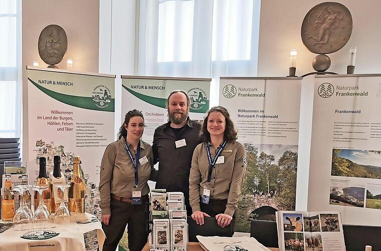 Die Naturparke präsentierten sich mit Infoständen und stellten zwei bis drei Kernthemen aus dem Gebiet vor. Der Naturpark Fränkische Schweiz-Frankenjura stellte das Kletterkonzept, die Orchideenvielfalt und die Streuobstwiesen am Stand vor. Dazu wurden neben dem fränkischen Champagner "Charlemagner" auch Saftschorlen von der Streuobstinitiative Hersbruck gezeigt.