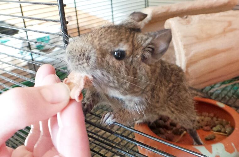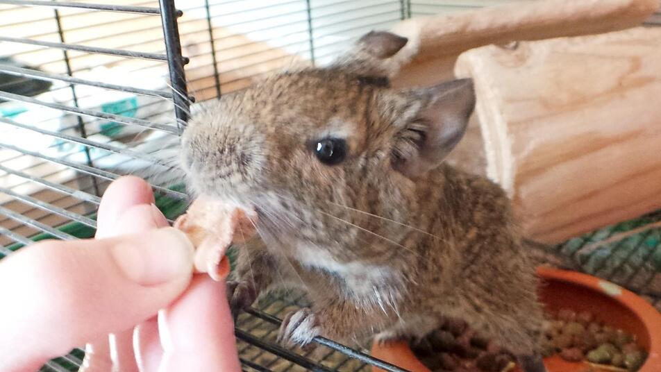Kevin ist ein circa ein Jahr alter unkastrierter Degu, der seit kurzem im Tierheim Kulmbach wohnt. Und da Kevin nicht länger "allein zu Haus'" sein möchte, suchen die Tierheim-Mitarbeiter nun Degufans, die schon einen oder mehrere seiner Artgenossen beherbergen und sich auch mit deren Vergesellschaftung auskennen. Falls jemand weibliche Tiere hat, könnte Kevin auch noch im Tierheim kastriert werden. Interessenten für Kevin können sich im Tierheim Kulmbach unter der Telefonnummer 09221/91288 melden. Foto: Tierheim