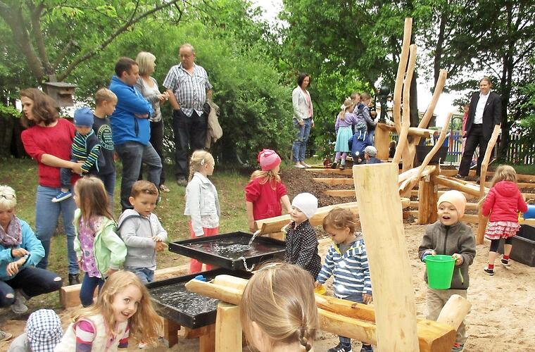 Danach wurde der neuerbaute Wasserspielplatz auf dem Kindergartengelände durch Pfarrerin Sonja von Aschen gesegnet und für die erwartungsvollen Kinder freigegeben. Eine Tombola bot viele tolle Preise und auch Kinderschminken wurde angeboten.