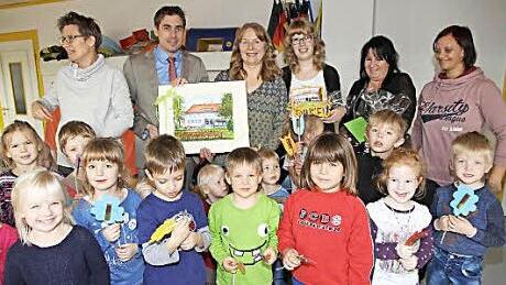 Bürgermeister Torsten Gunselmann würdigte sie in einer Feierstunden: "Du hast viele Veränderungen gemanagt, in den vergangenen Jahrzehnten gab es immer Neues." Immer habe sie es geschafft, dass die Kinder im Zentrum ihrer Arbeit standen. Von Heimatkünstler Hans Dörfler hatte er ein Aquarell des Kindergartengebäudes als besonderes Präsent anfertigen lassen. Als neue Kindergartenleiterin tritt Rebecca Fischer in große Fußstapfen.