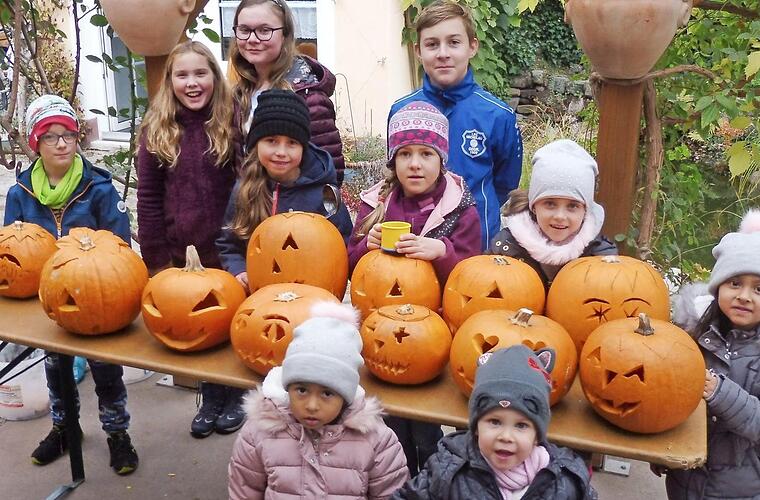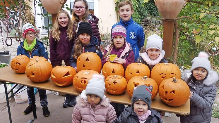 Natürlich hat Halloween auch vor Neuensee und Teilen von Michelau nicht Halt gemacht. So trafen sich die Neuenseer "Wühlmäuse", um ihre Kürbisse vorzubereiten. Es wurden herrlich schaurige Fratzen in die Kürbisse geschnitzt. Zuerst gingen alle vorsichtig daran, den Deckel herauszuschneiden, um dann eifrig das Innere von Kernen zu säubern. Anschließend wurden die Gesichter auf die Schale skizziert und diese dann mit Messern gestaltet. Die Kinder gaben sich dabei richtig große Mühe. Natürlich waren auch Eltern zur Stelle, um bei besonders kniffligen Stellen einzugreifen. Am Ende entstand ein Heer schaurig dreinblickender Halloweenkürbisse. Nach getaner Arbeit gab es für alle noch leckere, warme Kürbissuppe. Und wen es unter der Pergola der Familie Pohl dann doch noch fröstelte, konnte sich beim Ponyreiten aufwärmen. Foto: Pamela Stroh