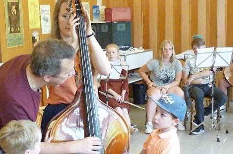 Gemeinsam mit Studiendirektor und Musiklehrer Hubertus Baumann und seiner achten Klasse vom Markgraf-Georg-Friedrich-Gymnasium wurde der Aktionstag "Musik" orga-nisiert und auch durchgeführt. Im Musiksaal des Gymnasiums wurden die Kinder der Kindertagesstätte am 2. Juni 2017 von den Schülern empfangen. Musiklehrer Baumann stellte verschiedene Streich- und Blasinstrumente vor, die von den Kindergartenkindern ausprobiert werden konnten, bevor die MGF-Schüler darauf Lieder für die kleinen Besucher aus der Waaggasse spielten.