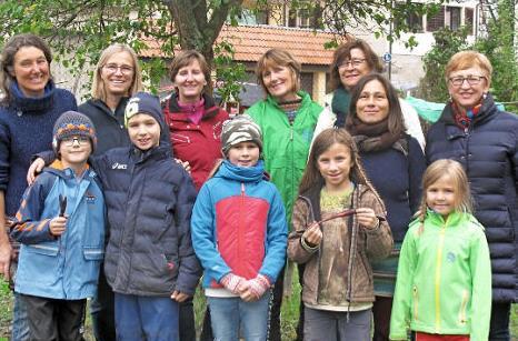 Trotz Herbstwetter kamen Kinder, die derzeit die Gruppe regelmäßig besuchen und die Gartenarbeit in die Regie nehmen. Dazu schauten ehemalige Gruppenleiterinnen vorbei, die die Programmplanung und - durchführung über einige Jahre hinweg übernommen und die Gruppe betreut hatten.