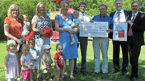Kronach für die BRK-Kinderkrippe einen Scheck über 4200 Euro. Dieses Geld wurde für den Kauf von Gegenständen im Innen- und Außenbereich verwendet. "Wir zeigen damit ein großes Herz", so der Vorstandsvorsitzende Klaus Scherr.