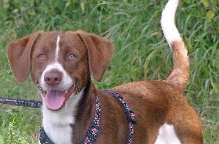 Der braun-weiße bretonische Spanielmix verdankt seinen Namen einer Schokolade. Schmusen und Herumtollen gehören zu den Leidenschaften des kastrierten Rüden, der in einer Familie bestens aufgehoben wäre.