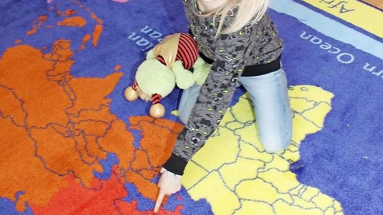Und er zeigt den Teppich aus dem Programm "Die Welt, auf der wir leben". Darauf sind die Kontinente abgebildet. Und die kann Kingston auch aufzählen. Außerdem erklärt er den Zahlenteppich: "Wenn ich mich auf die sieben stelle, dann sind meine Nachbarn die sechs und die acht." Sandra Woodrum fühlt sich und ihren Sohn gut auf die Schule vorbereitet.