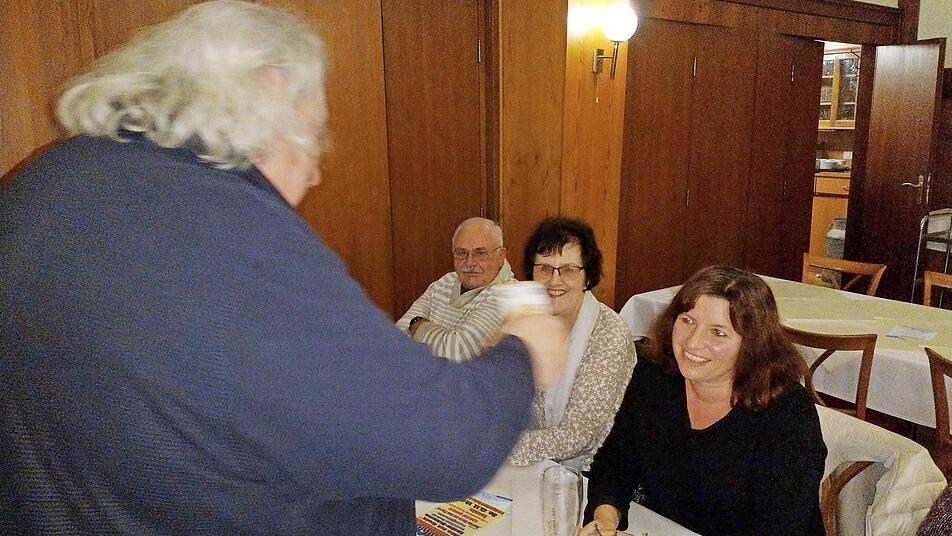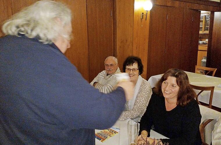 Zunächst musste Pater Waldemar Brysch aus dem Oblatenkloster, Leitender Pfarrer des Seelsorgebereiches "Unteres Haßlachtal", gestehen, eine Wette aus der ersten Stammtischrunde verloren zu haben: Er übergab der Gewinnerin Daniela Konrad den Wetteinsatz von 50 Euro.