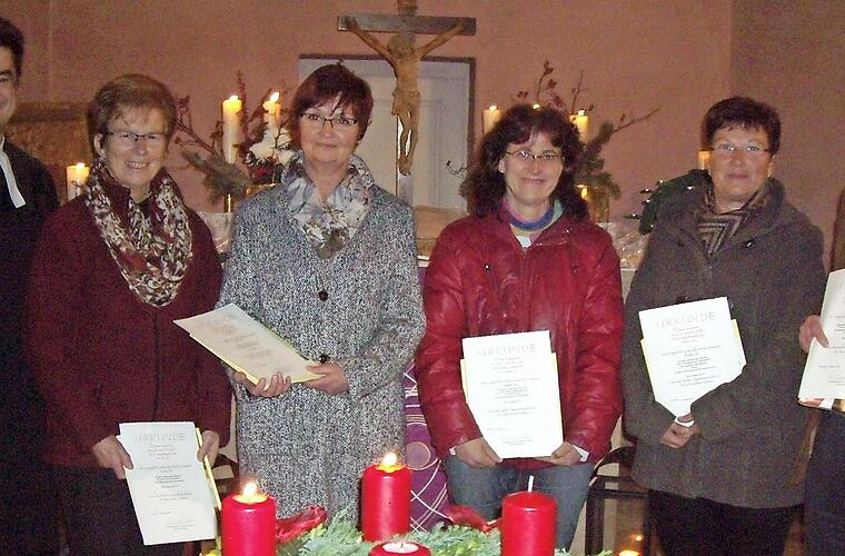 Aufgrund ihrer langjährigen Tätigkeit für die Kirchengemeinde wurden ausgezeichnet für 10 Jahre Karin Herr (Seniorenkreis und Basarteam), Stefanie Merz, Rosa-Maria Niepelt (beide Kindergarten), Gertraud Keller (Frauenkreis), Monika Roth (Krabbelgruppe und Kinderdisco); für 25 Jahre Bettina Rebert, Verena Ultsch (beide Kindergarten); für 35 Jahre Karin Döll (Leitung Kindergarten, Meyer zu Hörste: "Miss Kindergarten"); für 45 Jahre Lothar Weidner (langjähriger Kirchenvorsteher, Kirchenpfleger, Lektor, Gemeindebriefausträger), Margit Bauer (Organistin, Mesnerin, Pfarramtssekretärin, dazu der Pfarrer: "Schaltstelle der Kirchengemeinde mit Treue und Loyalität").