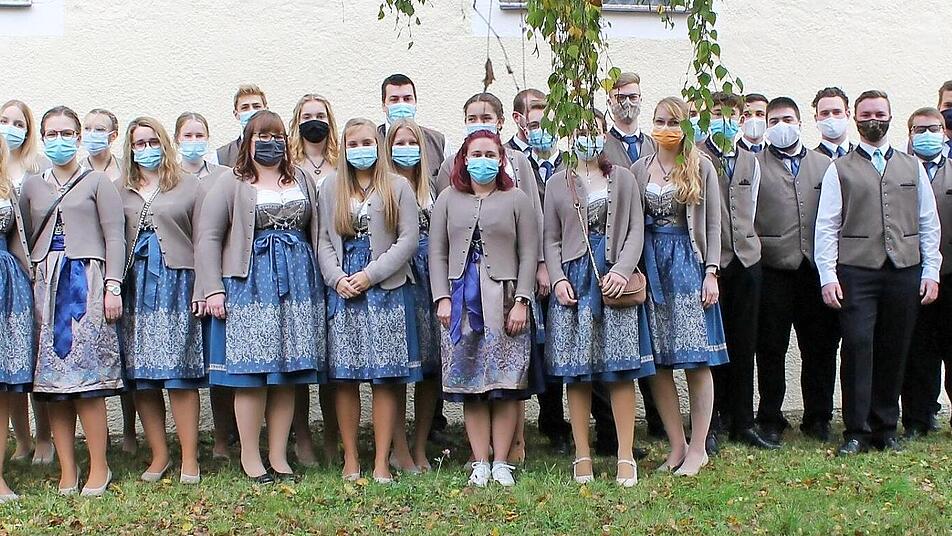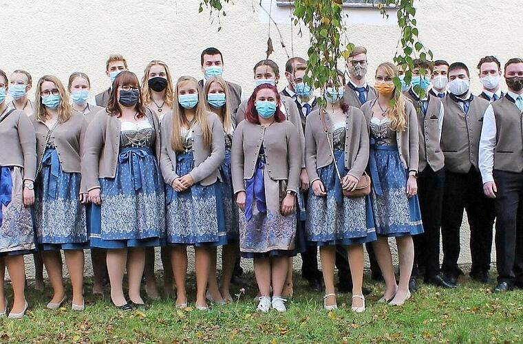 Kirchweih wurde in der Lauensteiner Nikolauskirche gefeiert. Pfarrer Bernhard Nikitka hielt den Festgottesdienst. Trotz der zurzeit ungewöhnlichen Umstände konnte der Pfarrer unter den Kirchenbesuchern 32 Ehrengäste begrüßen, denn so viele Jugendliche haben sich heuer der Kirchweihgesellschaft (Foto) angeschlossen. Foto: K.-H. Ziener