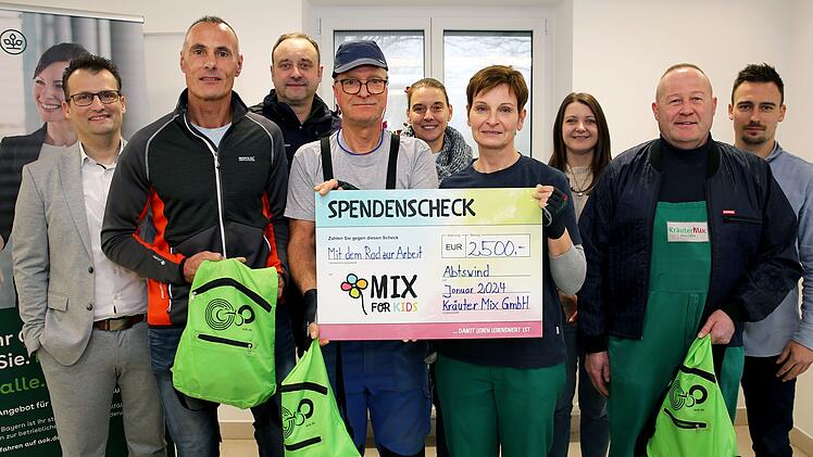Alle Teilnehmerinnen und Teilnehmer engagierten sich gleichzeitig auch für die gute Sache: Für jeden gefahrenen Kilometer spendete Kräuter Mix 15 Cent an den gemeinnützigen Verein Mix for Kids. Aufgerundet kamen so 2500 Euro für Kinderhilfsprojekte in Indien, Albanien und Deutschland zusammen. Zur Übergabe der Preise an die besten Radfahrer und des Spendenschecks trafen sich Vertreter des Belegschaftsausschusses, der Personalabteilung und von Mix for Kids sowie der AOK.