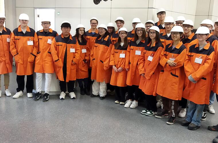 Um sich sicher auf dem Werksgelände und in den Werkshallen zu bewegen, wurden im Anschluss alle mit Schutzbrille sowie Sicherheitsmantel und Helm ausgestattet, bevor es in zwei Gruppen durch die zwei Produktionsbereiche Aluminium- und Eisenguss ging, in denen Technikkomponenten, Serienfertigungen und Prototypen aus jährlich 4.500 Tonnen Aluminium und 80.000 Tonnen Eisen für die Automobilindustrie hergestellt werden. Besonders eindrücklich war die Eisengießerei mit dem 1.500 Grad heißen Schmelzofen und der glutroten Eisenschlacke. Die Besichtigung der Gießerei eröffnete den Schüler*innen neue Einblicke in die Arbeitsrealität in der Schwerindustrie.