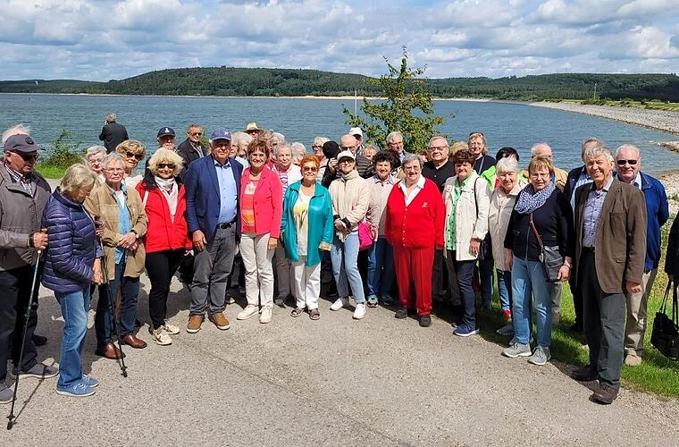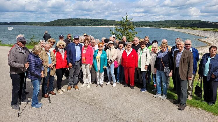 Bei einem Halt unmittelbar am Staudamm des Brombachsees erfuhren die Senioren Details über den Grunderwerb für den See, über die Umsiedlung von 14 Mühlen, die einst entlang der Altmühl standen und über die Flutung des Sees. Aufgrund der geringen Niederschläge der vergangenen Jahre fehlten dem See derzeit vier Meter Wasserstand.
