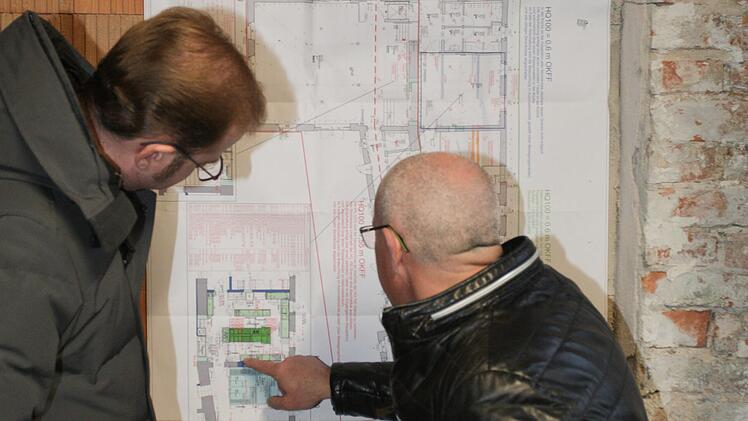 Trotzdem zeigen sich die Stadträte vom Baufortschritt erstaunt und erfreut. Die Rohbauarbeiten sind weitgehend abgeschlossen, Schwerpunkt derzeit ist die Installation der Technik, verschiedenste Leitungen werden verlegt. Begonnen wurde der Rundgangs in der künftigen Radlerwerkstatt, setzte sich im Gastronomiebereich fort, ging ein Stockwerk höher in die Gästezimmer und endete in der künftigen BNE-Station für nachhaltige Entwicklung des Landkreises. Auch wenn in dem guten Jahr bis zur Eröffnung noch viel Arbeit zu tun sein wird: Das Grundgerüst für den sanierten Alten Hafen ist schon zu erkennen.