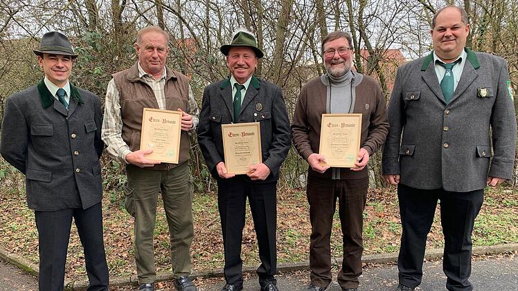 Höhepunkt der Versammlung war die Ehrung langjähriger und verdienter Mitglieder. Urkunde und Treunadel für 25-jährige Mitgliedschaft erhielten Maximilian König und Benjamin Wilhelm. 40 Jahre hält Fritz Popp aus Fröhstockheim dem Verein die Treue und vor 50 Jahren traten Hans Kreßmann und Reinhard Fröhlich dem Schützenverein bei.