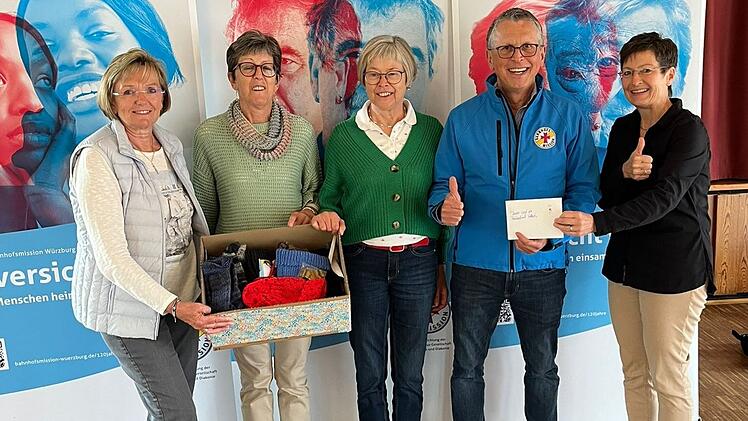 Anschließend überreichte Vorsitzende Rita Engert an Michael Lindner-Jung eine Spende des Frauenbundes Volkach in Höhe von 350 Euro sowie ein kleines Präsent für seinen interessanten Vortrag. Dank vieler fleißiger Strickerinnen konnte außerdem eine große Anzahl selbstgestrickter Socken und Mützen für Bedürftige überreicht werden.