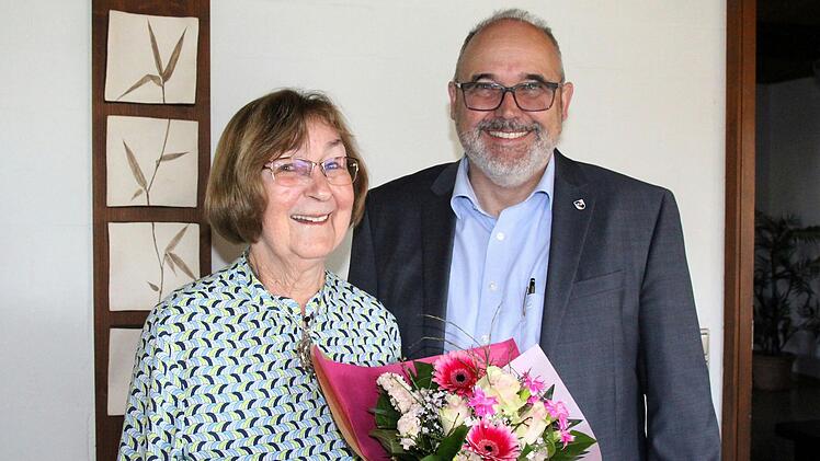 Zum Geburtstag der ehemaligen Lehrerin und Rektorin der Verbandsschule Schwarzacher Becken gratulierten Ehemann Rupert, Tochter Barbara sowie drei Enkeltöchter. Die Glückwünsche des Marktes Schwarzach überbrachte Bürgermeister Volker Schmitt, der die Jubilarin in der Schule als Erstklässler erleben durfte. Für die Pfarrgemeinde gratulierte Diakon Lorenz Kleinschnitz.
