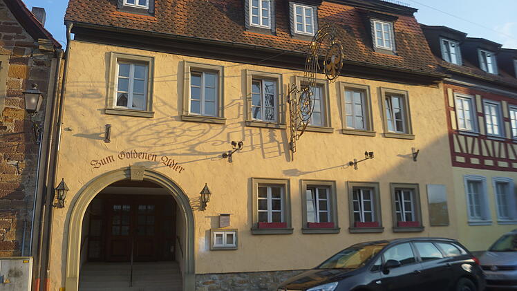 Einst war es ein Bürgerhaus, später eine Bäckerei, und noch etwas später herrschte dort eine "Brau- und Zapfengerechtigkeit für Bier und Wein von hochfürstlichen Gnaden." Gemeint ist das Gasthaus "Zum Goldenen Adler" in Prichsenstadt, das eine wahrlich bewegte Vergangenheit hinter sich hat. Seit zwei Jahren steht es leer, früher war es auch mal ein Wirtshaus mit einer Mini-Discothek und einer Kegelbahn im Garten.