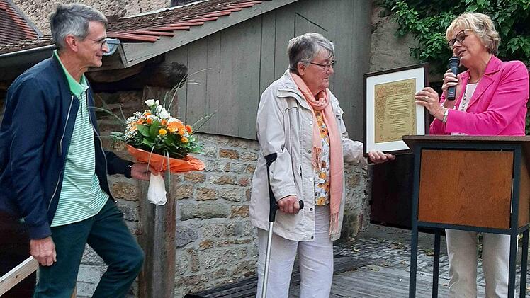 Im Rahmen des Kirchenburgfestes wurde Monika Conrad für ihr nahezu 60 Jahre langes, unermüdliches Engagement in der Dorfgemeinschaft, im Sport und im kulturellen Bereich von der Bürgermeisterin und Vorsitzenden des Förderkreis Kirchenburg Gerlinde Stier ausgezeichnet.