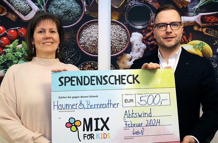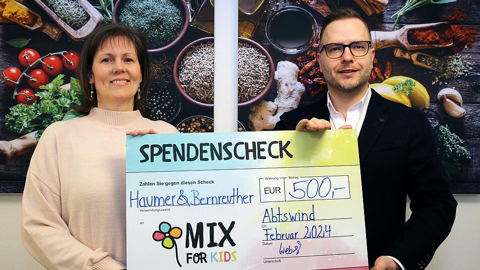 Die Firma Haumer & Bernreuther, ein Gewürz- und Kräuterunternehmen aus Abtswind, spendete 500 Euro an Mix for Kids. Geschäftsführerin Stephanie Weber überreichte einen symbolischen Scheck an den stellvertretenden Vorsitzenden des gemeinnützigen Vereins, Bernhard Mix. Das geht aus einem Presseschreiben hervor, dem folgende Informationen entnommen sind.