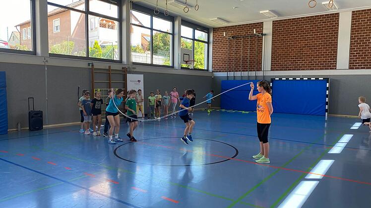 Laufen, Springen, Ballspielen- was eigentlich dem natürlichen Bewegungsdrang von Kindern entspricht, gehört nicht mehr selbstverständlich zu deren Tagesablauf. So spielen viele Kinder am Computer oder sehen fern. Um Kinder wieder zu mehr Bewegung zu motivieren, hat die Deutsche Herzstiftung das Präventionsprojekt "Skipping Hearts" initiiert. Denn wer bereits von Kind an einen gesunden Lebensstil pflegt, verringert das Risiko im Alter am Herzen zu erkranken. Die sportliche Form des Seilspringens eignet sich zur Schulung und Verbesserung motorischer Grundfertigkeiten wie Ausdauer und Koordination. Die Erfolgserlebnisse beim Springen motivieren und erhöhen die Freude an der Bewegung. Den 90-minütigen Einführungsworkshop meisterten die Drittklässler der Albert-Schweitzer-Grundschule gemeinsam mit Katharina Hartmann und hatten dabei viel Freude. Im Anschluss an die kleine Abschlussvorführung für Eltern, Geschwister und Mitschüler/innen, durfte noch munter ausprobiert werden.