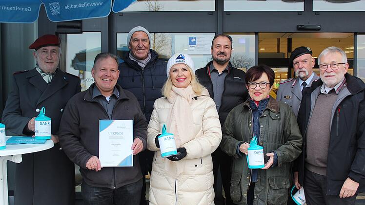 Stabsgefreiter der Reserve Gerhard Bauer hatte als Sammlungsleiter Landrätin Tamara Bischof, den ehemaligen Oberbürgermeister Siegfried Müller, stellvertretenden Landrat Robert Finster, die Stadtratsmitglieder Gertrud Schwab, Klaus Heisel, Elvira Kahnt und Manfred Freitag zum Mitmachen animiert. Von 9 Uhr bis 12 Uhr baten die Teilnehmenden vor den Eingängen des E-Centers in Kitzingen in der Marktbreiter Straße in wechselnder Besetzung um Spenden. An diesem Tag fanden sich 744,37 Euro in den Sammelbüchsen. Zusammen mit der vorherigen Sammlung beim Neuen Friedhof (323 Euro) und dem Ergebnis von Privatsammler Markus Pavel wurden schließlich 1253 Euro gezählt. E-Center-Inhaber Detlef Kautzmann erhielt vom Bezirksverband des Volksbundes Deutsche Kriegsgräberfürsorge Unterfranken eine Dankurkunde für seine alljährliche Unterstützung. Die gleiche Auszeichnung erhielt Tobias Roppelt vom Rewe-Einkaufsmarkt in der Dagmar-Voßkühler-Straße.