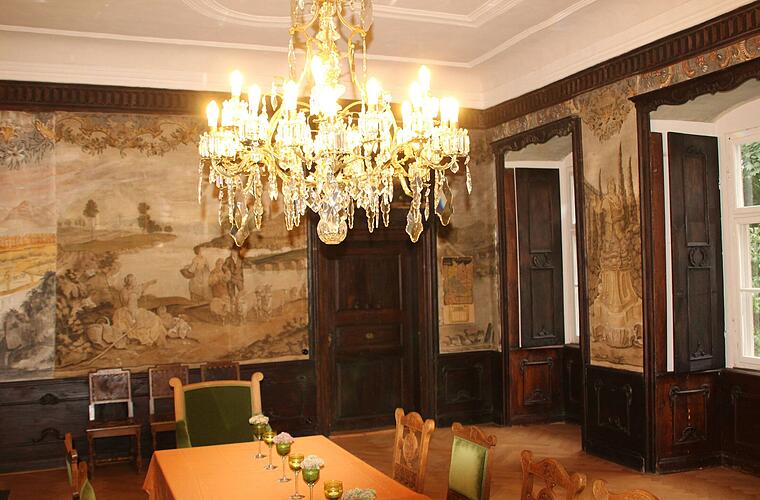 Jeder Raum hat so seine eigenen Geschichten, die Mathias Barthels bei der Führung erzählte. Die wertvollen Wandtapeten, die originalen Holzböden, Decken mit Stuckverzierungen, mächtige Holzöfen, der riesige, 200 Jahre alte Billardtisch im Obergeschoss und manches mehr wird gezeigt.