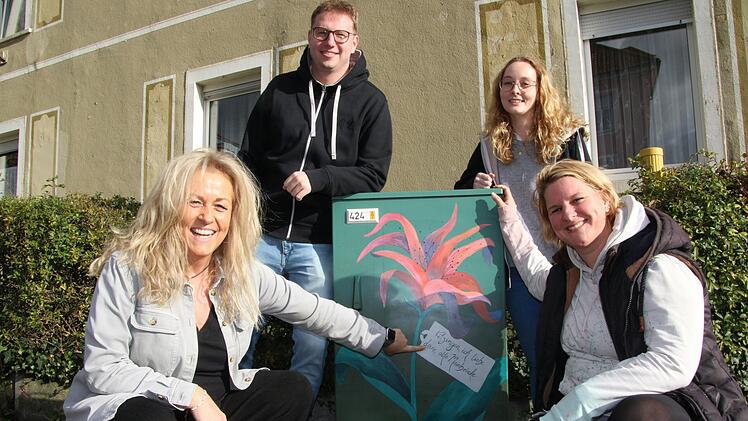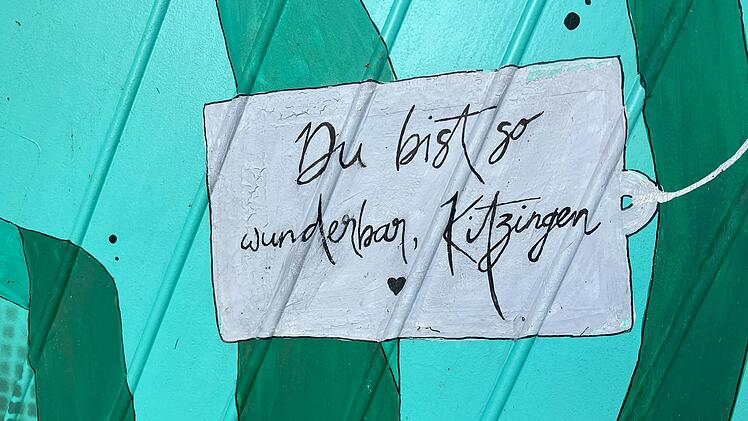 Deshalb haben Burkard, ihr Team und Jotty überlegt, was neben Jottys floralem Design auf den Stromkästen zu sehen sein soll. Schnell war man sich einig: Es sollen kleine Liebesbotschaften an Kitzingen sein. "Es gibt so viel Schönes hier in der Stadt", findet Jotty und Silke Burkard ergänzt: "Die Auswärtigen sehen das leichter. Aber auch wir Einheimischen entdecken ganz viel, wenn wir uns mal richtig umschauen." Auf den drei bereits bemalten Stromkästen heißt es zum Beispiel, Kitzingen sei wunderbar und die Alte Mainbrücke ein Ort zum Lieben.