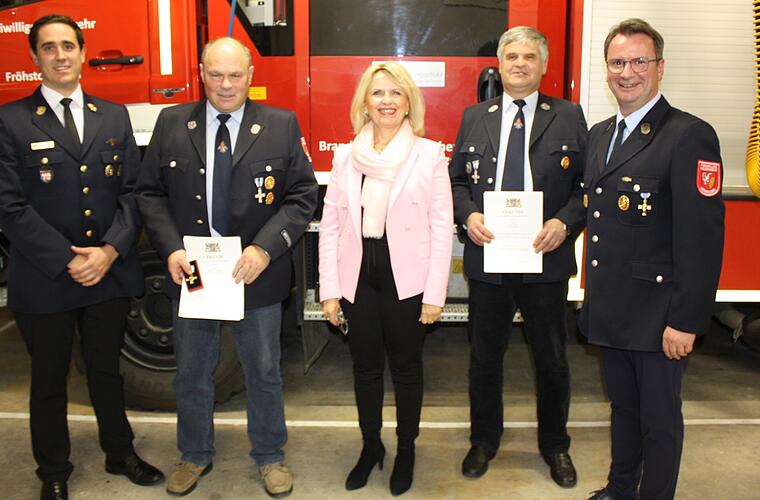 Zusammenhalten - Besser Kommunizieren - Einigkeit - so soll es in der Aktiven Wehr und im Feuerwehrverein gut weiter gehen, betonte Bürgermeister Klein. Er bedankte sich bei den Feuerwehrdienstleistenden für ihre Einsatzbereitschaft. Er mahnte aber auch an, dass der Zusammenhalt wieder verstärkt werden müsse. Die Gemeinde wird auch weiterhin alles Notwendige aufwenden, um die Feuerwehren vor Ort gut auszustatten. Für 40 Jahre aktiven Dienst wurden Reiner Mahr und Friedrich Amberger geehrt. Landrätin Tamara Bischof nahm die Ehrungen vor und wies in ihrem späteren Grußwort auf die Bedeutung der Freiwilligen Feuerwehren gerade im Hinblick auf mögliche Katastrophenfälle hin. Bürgermeister Klein betonte die Notwendigkeit des Zusammenhalts; die Feuerwehren sind notwendige Sozialgemeinschaften, die einen Ort prägen. Hier ist kein Platz für Eitelkeiten, nur zusammen kann der Dienst am Nächsten gelingen. Dem schloss sich auch Kreisbrandinspektor Sebastian Muth in seinen Grußworten an.