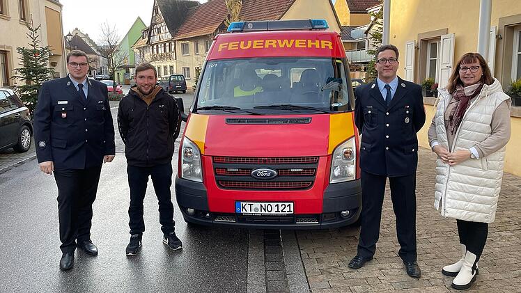 Am Donnerstag, 29. Dezember, konnte die Feuerwehr Nordheim am Main ihr neues Fahrzeug offiziell an Bürgermeisterin Sibylle Säger übergeben. Das vom Feuerwehrverein finanzierte Fahrzeug wurde über das vergangene Jahr hinweg vom einfachen Transporter zum Feuerwehrfahrzeug in Eigenregie ausgebaut. Auch die ortsansässige Raiffeisenbank beteiligte sich mit einer Spende und lobte die Ideen der Feuerwehr. Durch die Hilfe der KFZ-Meisterwerkstatt Benedums-Garage, mit Inhaber Simon Benedum, konnte dieses Projekt in rund 800 ehrenamtlichen Stunden verwirklicht werden. Dieser folierte und baute das Fahrzeug zusammen mit den Kameraden der Feuerwehr kostenfrei um. Bürgermeisterin Sibylle Säger zeigte sich stolz über die Leistung ihrer Freiwilligen Feuerwehr und das Engagement das die Männer und Frauen in ihrer Freizeit erbringen, um die Feuerwehr wieder ein Stück leistungsfähiger zu machen. So übernimmt ab diesem Tag die Gemeinde die Kosten für die künftige Unterhaltung sowie der Beladung des Fahrzeuges.
