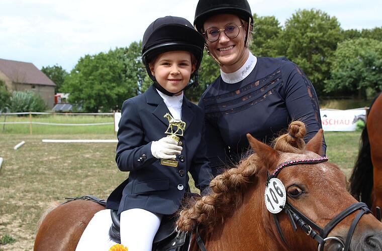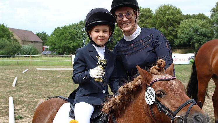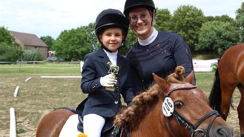 Die Veranstaltung, bei der die Gäste rundum bestens versorgt wurden, startete mit dem Fränkischen Ponyfohlen-Championat und der Ponyzügelführklasse. Die jüngsten Reiterinnen und Reiter stellten sich den kritischen Augen von Richter Falk Pewesdorf. Die sechsjährige Lena Wagner aus Prichsenstadt lag mit ihrem Pony Jupp und Führerin Lisa Brendler in der "sehr engen Konkurrenz" am Ende ganz knapp vorne. Pewesdorf und Vorsitzender Günter Fendel, seit der Vereinsgründung des Pferdezuchtvereins 1989 im Amt, überreichten Schleifen und Ehrenpreise.