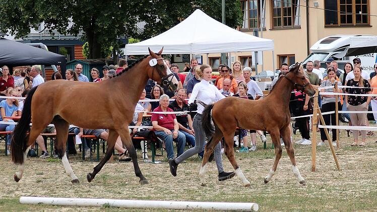 Viel Applaus gab es dann auch bei der Fohlenprämierung auf dem Wiesengelände neben dem Campingplatz. Prominentester Pferdezüchter war der ehemalige Staatssekretär Gerhard Eck aus Donnersdorf mit seiner Stute Charming Epona und Fohlen Cassini II. Der 63-Jährige zollte dem Veranstalter und dem Teilnehmerfeld großen Respekt und Anerkennung: "Das ist nicht selbstverständlich in einer Zeit, die sich ständig wandelt und in der man sich den Herausforderungen immer wieder neun stellen muss."