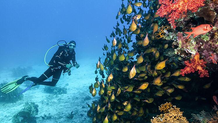 Neeser: Mit zunehmender Tiefe verschwinden erst die warmen Farben, ab 50 Metern ist auch grün nicht mehr sichtbar, nur noch blau. Das Blau geht dann schrittweise in ein Schwarz über.