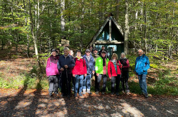 In Castell hatten sich bei herrlichem Herbstwetter 14 Wanderer zur Fahrt an den Ausgangspunkt eingefunden. Zwei Autowanderer fuhren direkt nach Handthal.