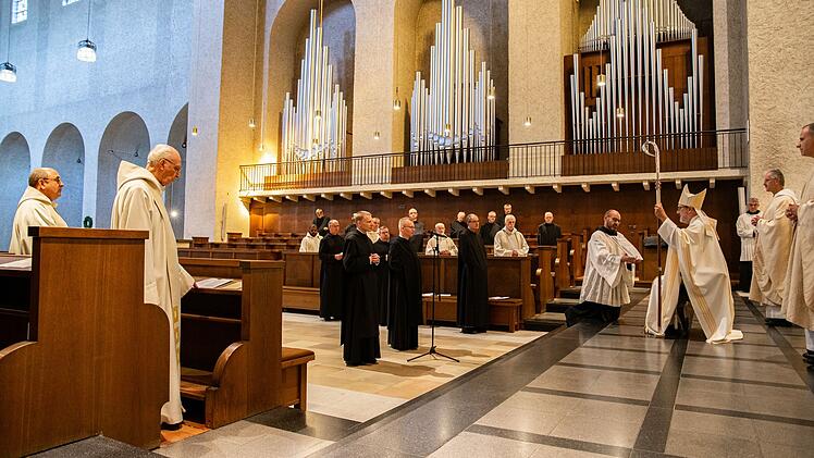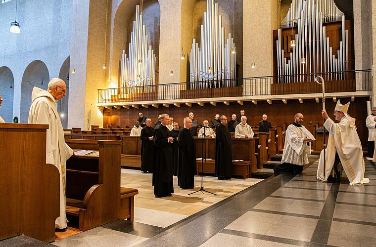 Vor Gott, Abt Michael und der Mönchsgemeinschaft von Münsterschwarzach versprachen sie Beständigkeit, klösterlichen Lebenswandel und Gehorsam nach der Regel des heiligen Benedikt. Mit dem Unterschreiben der Professurkunde auf dem Altar und dem Singen des Professgesangs schlossen sie sich für zwei Jahre der Abtei Münsterschwarzach an. Auf diesen Gesang nahm auch Abt Michael in seiner Begrüßung Bezug. Dieses "Liebeslied" sei ein Zeichen des Vertrauens, des Zugehens auf Gott. Wie Petrus, der im heutigen Evangelium das Boot verließe, um auf Jesus zuzugehen, würden die jungen Mönche in ihrer ersten Profess mit ausgebreiteten Armen im "Suscipe me" auf Jesus zugehen. Und dann, wenn sie auf die Knie gingen, Gott beinahe anflehen: "Enttäusche mich nicht, lass mich nicht scheitern und untergehen." Man wisse am Anfang seines Mönchslebens nicht, wie der eigene Weg verlaufen würde. Doch in der vergangen Woche seien die Professjubilare, die 60 oder 70 Jahre Profess feierten, ein Zeichen, dass es gut gehen kann.
