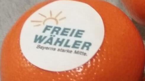 Die Freien Wähler haben sich auf ihren politischen Inhalt konzentriert. Eine Kleinigkeit kann der Wähler aber trotzdem einstecken: eine Mandarine! "Lecker", denkt sich der gesundheitsbewusste Bürger. Auf dem Weg nach Hause wird diese mit Sicherheit schnell verspeist. "Oh, von wem war die Mandarine nochmal? Nicht wichtig, sie hat auf jeden Fall gut geschmeckt."