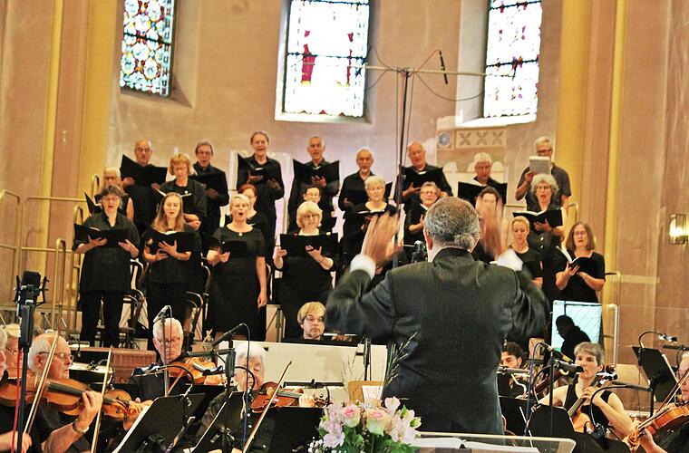 Wieder hat der musikalische Leiter der evangelischen Kirchengemeinde, KMD Jörg Wöltche, ein Ausrufezeichen der Kirchenmusik gesetzt, hat das geographische Thema des Kissinger Sommers "Wien-Budapest-Prag-Bad Kissingen" aufgegriffen und das "Te Deum 145" des Prager Barockkomponisten Jan Dismas Zelenka, des "Böhmischen Bach", einstudiert. Das umfassende Werk verlangt Kammerorchester, Chor und Gesangssolisten und so ist der Altar- und Chorraum gerade groß genug. Bemerkenswert, dass die geforderte Besetzung mit dem "hauseigenen" Kammerorchester Bad Kissingen, dem Würzburger Madrigalchor und den Sopranistinnen Karin Mauröder, Katharina Wöltche, mit Katrin Edelmann Alt, Gustavo Martin Sánchez Tenor und Joachim Herrmann, Bass, ganz überwiegend in der Region gefunden wurde. Noch erstaunlicher aber, auf welches Können sich Wöltche verlassen kann, mit welcher Präzision dieses anspruchsvolle Werk gespielt und gesungen wurde. Wie pointiert Wöltche die vielschichtige Musik einstudiert hatte, wurde mit jeder Sequenz deutlicher.