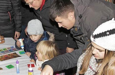 Kein Wunder, dass die Kinder mit Elan und Begeisterung an Pinsel und Farbe gingen, um bunte Mosaikkärtchen zu gestalten. Aber auch die Eltern zeigten sich bei dieser Auftaktaktion fleißig und versorgten die Besucher mit Weihnachtsleckereien.