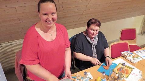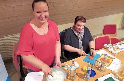 Mit den cleveren Tipps der Ernährungsfachfrau ging das Nachkochen dann auch leicht von der Hand. In Zweiergruppen probierten die Teilnehmerinnen Lachscreme und Radieschenbutter, raspelten Karotten für die Karottenbutter. "Der Clou für den guten Geschmack sind Vanillezucker, eine Prise Curry und flüssiger Honig", empfahl Herbst.