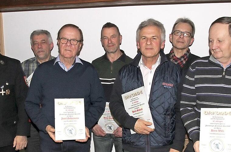 Im vergangenen Jahr rückte man zu zwei Brandeinsätzen, drei technischen Hilfeleistungen aus, zudem wurden sieben Sicherheitswachen getätigt und es gab vier Fehlalarme, bilanzierte Harsch. "Für eine Feuerwehr sind nicht nur die Aktiven wichtig. Auch die passiven Mitglieder bringen sich mit viel Engagement im Verein ein", leitete der Vereinschef nach dem Bericht des Schriftführers Frank Walz und den Erläuterungen des Kassiers Markus Rattel die Ehrungen ein. Für 25-jährige Vereinszugehörigkeit bedankte er sich bei Erhard Haselmann. Auszeichnungen für 40-jährige Vereinstreue erhielten Josef Dellermann, Klaus Denzler, Harald Kohlmann, Hans Schaub, Wolfgang Schrauder, Hans Walz, Roland Dauer, Josef Hübschmann und Jürgen Kupfer.