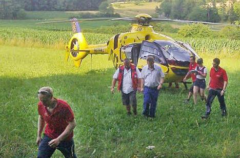 Dieser war auf einer Wiese in der Nähe des Unfallortes gelandet. Der Rettungshubschrauber flog den Verunfallten ins nächste Klinikum.