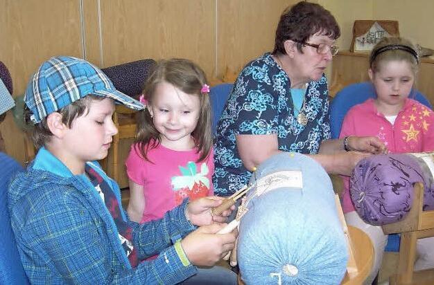Teuschnitz/Nordhalben — Yannik, Emely und Laura vollbringen gerade - im wahrsten Sinne des Wortes - "Spitzen"-Leistungen. Die Hortkinder sitzen im Halbkreis. Jeder von ihnen hat ein rollenförmiges Klöppelkissen mit mehreren Klöppeln vor sich. Auf dem Kissen ist mit Stecknadeln ein Klöppelbrief bestigt, der das Muster vorgibt. Die Klöppel sind paarweise mit Fäden aufgewickelt.