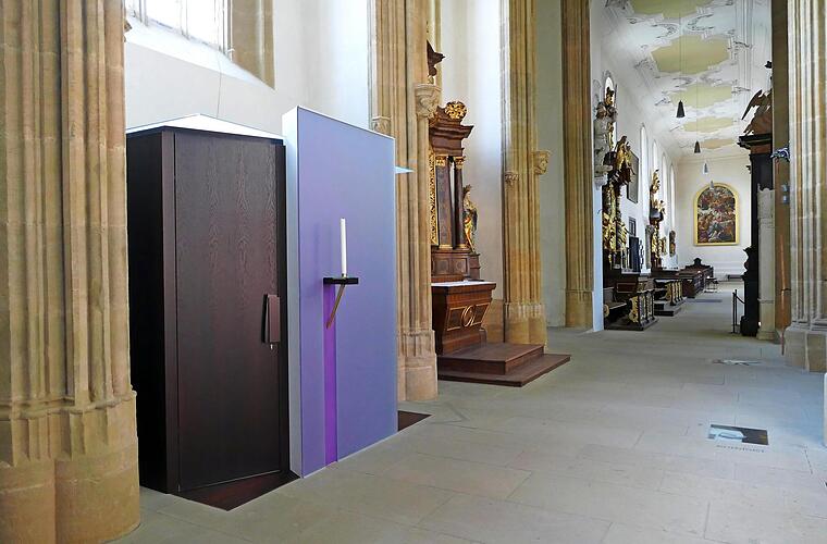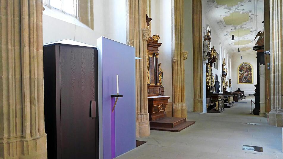 Nachdem die Tafeln im Innenhof der JVA Ebrach der Witterung ausgesetzt waren, haben sie eine gewisse Patina angesetzt. So kommen diese Kunstwerke in die Obere Pfarre und werden im Chorumgang vor dem Beichtraum platziert. "Jeder ist eingeladen, seine Gedanken hinzuzufügen - mit Kreide, einen Schwamm gibt es nicht", betont Natascha Hillebrand-Kaup, die für den Gemeindeausschuss der Oberen Pfarre die Aktion organisiert.