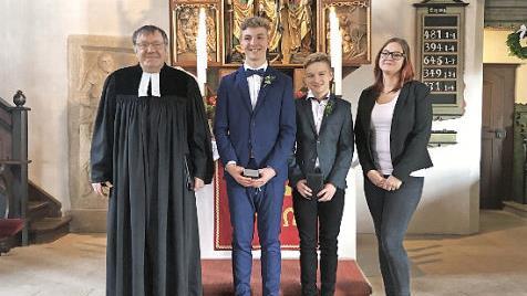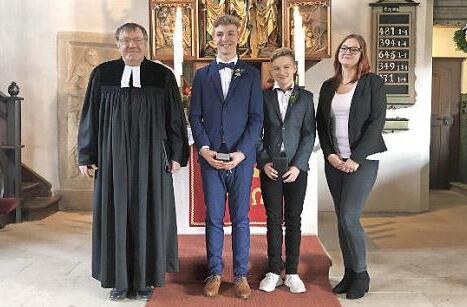 In der St. Laurentius- Kirche in Burggrub wurden am Palmsonntag Sven Dietz (l.) und Max Dotzauer konfirmiert. Pfarrer Michael Foltin gestaltete zusammen mit der Jugendbeauftragten der Kirchengemeinde,...