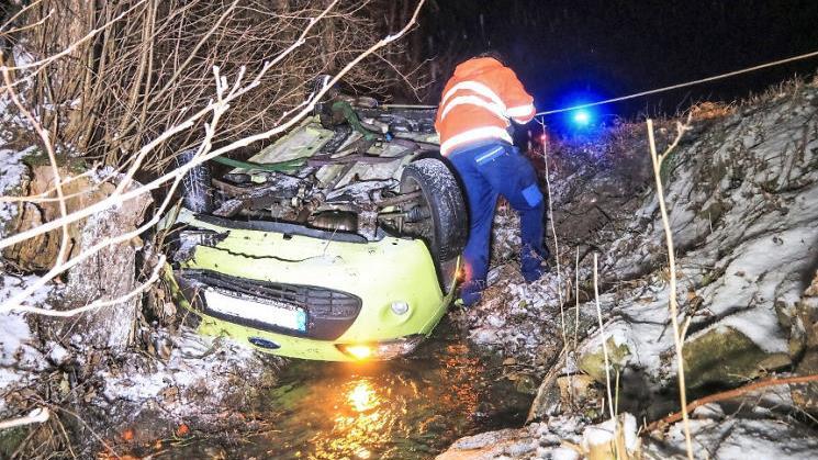 Glimpflich ausgegangen ist in der Nacht auf Freitag ein Schneeunfall in der Nähe des Scheßlitzer Ortsteils Peulendorf. Eine Autofahrerin wurde dabei leicht verletzt. Die 55 Jahre alte Frau war laut Auskunft der Polizei gegen 5.15 Uhr mit ihrem Auto von Peulendorf in Richtung Köttensdorf unterwegs. "Kurz nach dem Ortsende ist sie auf der schneeglatten Fahrbahn ins Schlingern geraten, in den Graben gefahren und hat sich überschlagen", berichtet Alexander Krapp, Sprecher der Polizei Bamberg Land. Das Auto landete kopfüber in einem Bachlauf. Die Feuerwehr kümmerte sich um die Absicherung der Unfallstelle. Foto: News5/Merzbach