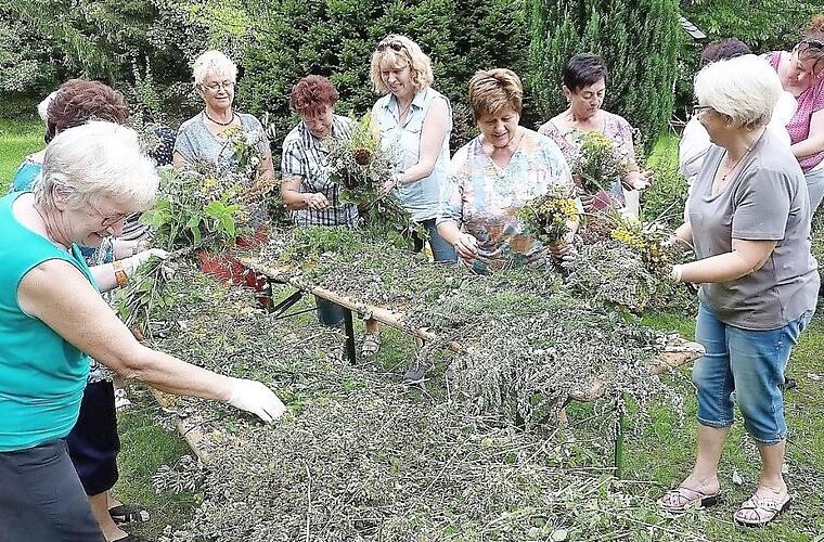 Landkreisweit nimmt beim Katholischen Frauenbund Stockheim die Kräuterweihe einen besonders hohen Stellwert ein. Auch heuer ist wieder ein Großeinsatz angesagt, und zwar auf dem Anwesen von Kirchenpflegerin Elvira Ludwig am heutigen Montag ab 14 Uhr. Verwendung finden dabei vor allem Kamille, Schafgarbe, Johanniskraut, Beifuß, Wasserminze, Weidenröschen, Goldrute, Thymian, Baldrian, Zitronenmelisse, Majoran, Blumen des Feldes sowie verschiedene Getreidesorten. Dieser alljährliche Traditionstreff ist für die Teilnehmerinnen ein besonderes Ereignis in idyllischer Lage des Anwesens Ludwig. Der Reinerlös ist für das Gotteshaus St. Wolfgang bestimmt. Selbstverständlich beteiligen sich an der Ausgestaltung der Messe die Frauen des Katholischen Frauenbundes.