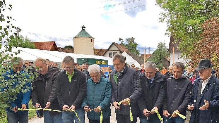 Ganz Seelig feierte am Kirchweihmontag die Verkehrsfreigabe der Kreisstraße BT 35 zwischen ihrem Ort und dem Nachbarort Hubenberg durch den Bayreuther Landrat Hermann Hübner (CSU). Federführend begleitet und vorangetrieben hatte den rund zwei Kilometer langen und fünf Meter breiten Straßenbau für letztlich rund 1,5 Millionen Euro Seeligs Ortssprecher Berthold Appel. Das Straßenstück ist zwar mit 456 gemessenen Fahrzeugen durchschnittlich pro Tag nicht gerade stark befahren. Doch auf der alten, teilweise nur 3,80 Meter breiten Straße war ein sicherer Begegnungsverkehr nicht möglich. Auf der neuen Straße wurden in einigen Bereichen die Kurven und Kuppen entschärft und auf der gesamten Länge die Straßenentwässerung erneuert. Möglich war dies, weil Privatbesitzer Grund dafür abgetreten haben. Für nächstes Jahr kündigte Hübner den Bau eines Radwegs entlang der Kreisstraße zwischen Hubenberg und Breitenlesau an. Foto: Thomas Weichert